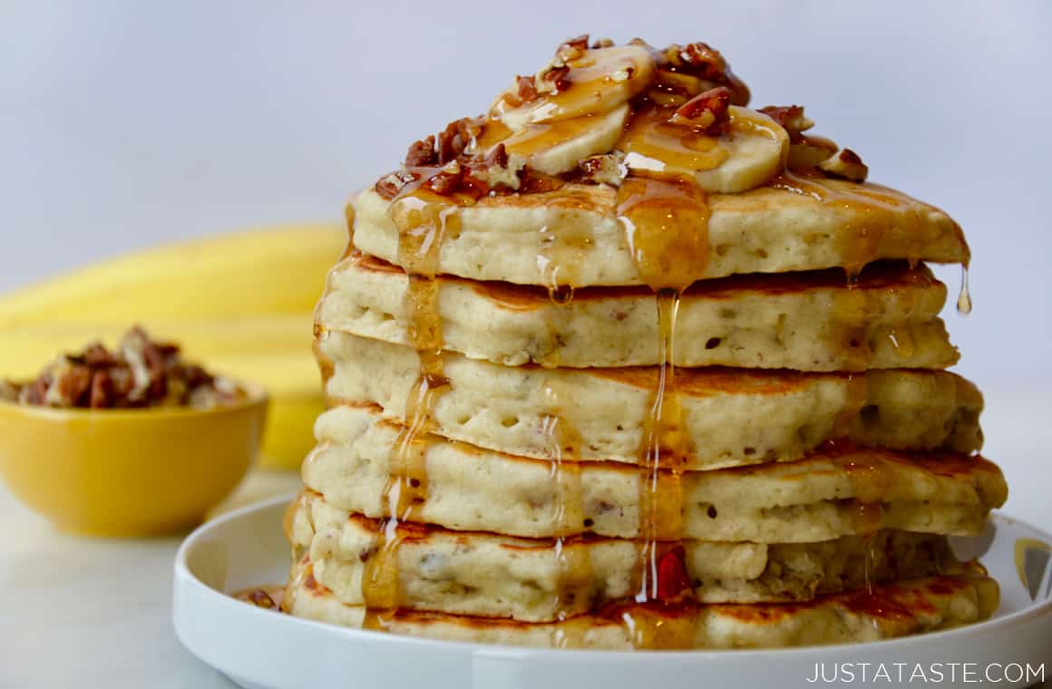 DSC_0020 | Dairy free, Pancake recipe, Peanut butter ... from i.pinimg.com Bastille day recipes and ideas! Easy bisquick banana waffles 2 cups bisquick baking mix 2 tablespoon vegetable oil 1 egg 1 1/3 cups milk 2 tablespoons sugar 1/2 cup mashed ripe banana beat all ingredients with hand beater until smooth. You don't have to be exact. I've just made an addition and some subtractions. Cream cheese, maple syrup, milk, chopped pecans, eggs, milk, banana and 6 more zucchini pancakes the life jolie blog butter, bisquick, black pepper, onion powder, parsley, garlic powder and 4 more Cook until edges are dry, turn, cook until golden brown. Stir in chocolate chunks and 1/2 cup pecans. But 1 thing to note is really to cook this on a low temperature so that the insides of the pancakes gets cooked.